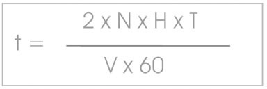The average daily operating time of the hoist can be calculated from the running time of the hoisting machinery (Hours/day):